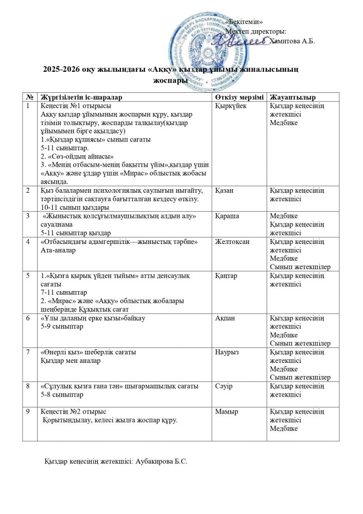 «Аққу» клубының жылдық жоспары